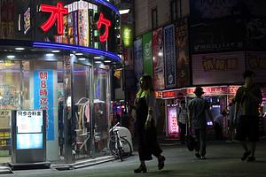 Pedestrians explore the neon warren of Shinjuku, Tokyo.